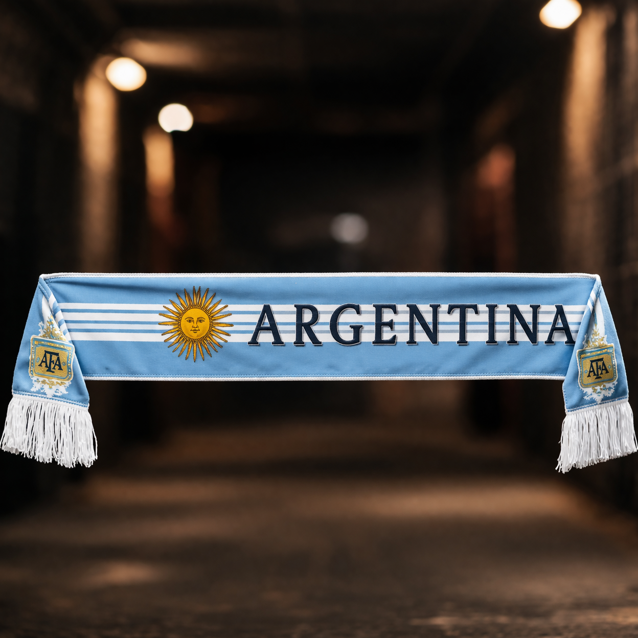 Este cachecol captura a essência da Seleção Argentina. Enrola-o ao pescoço e sente que estás no estádio com a equipa. Na rua, no frio ou em casa a torcer pelo próximo golo histórico. Porque apoiar a Argentina não é só um hábito… é uma emoção que dura para sempre.