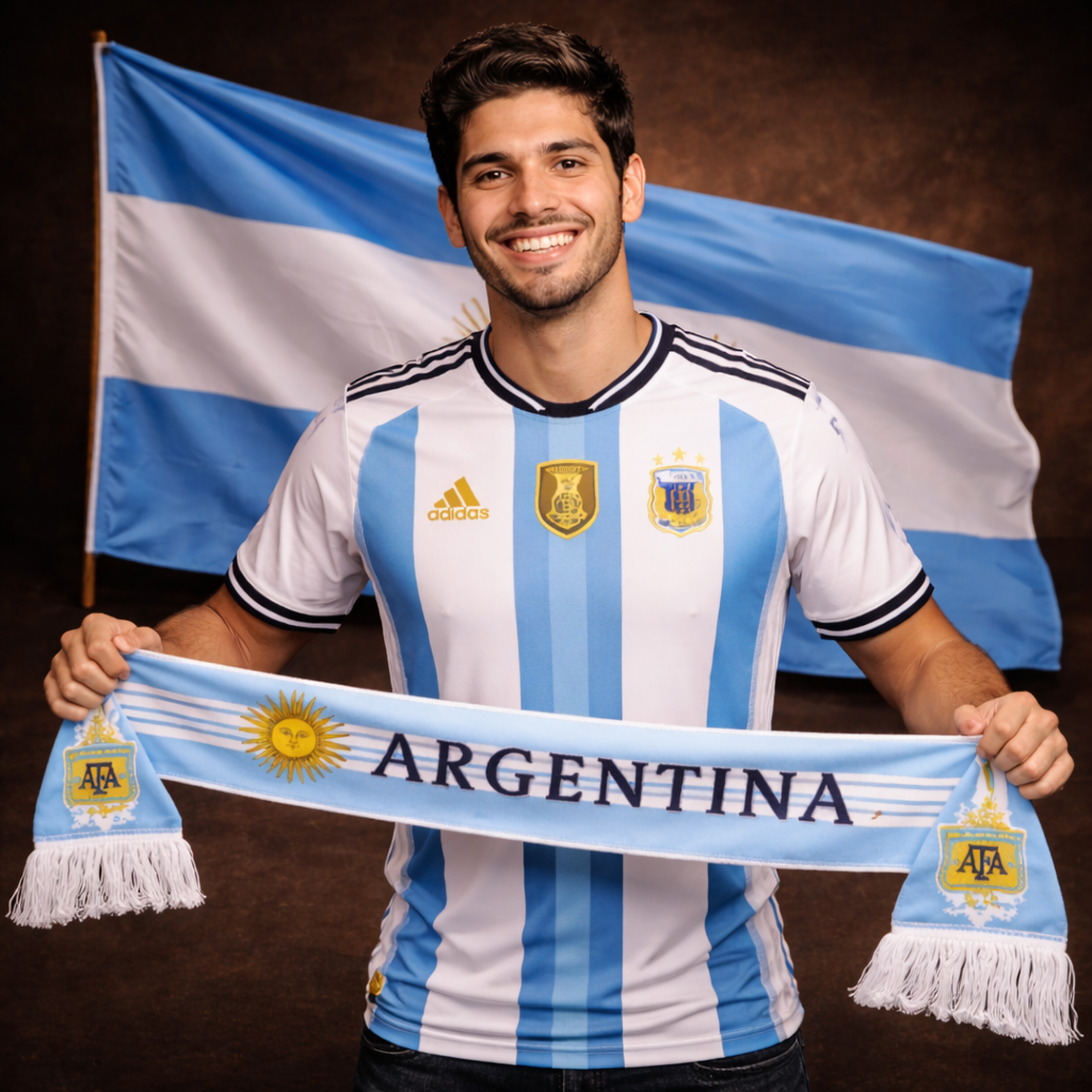 Este kit completo captura a essência da Seleção Argentina. Veste a camisola, enrola o cachecol e hasteia a bandeira – sente que estás totalmente unido à equipa e a milhões de torcedores. No estádio, na varanda, na rua ou em casa a vibrar com cada golo histórico. Porque apoiar Argentina não é só comprar peças… é viver a emoção completa que dura para sempre.