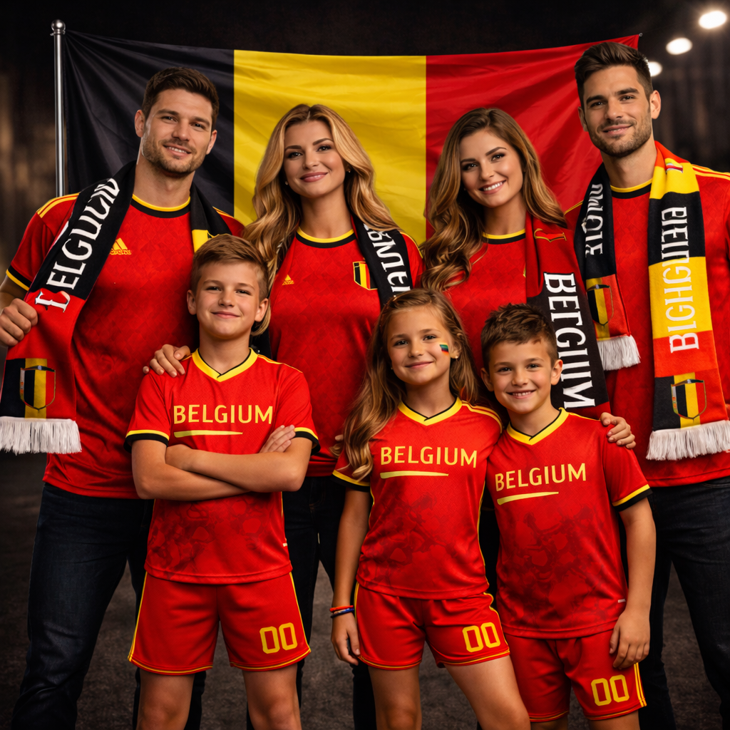 Este kit tribo captura a essência da Seleção Belga para famílias grandes ou grupos de amigos. Vistam as camisolas, enrolem os cachecóis, ponham os equipamentos nos mais pequenos e hasteiem a bandeira juntos – sintam que estão unidos como uma verdadeira tribo de torcedores. No estádio em multidão, no churrasco a vibrar ou em casa a torcer pelo próximo golo histórico. Porque apoiar Bélgica não é só cultura… é uma emoção coletiva que une o pessoal todo e dura para sempre.