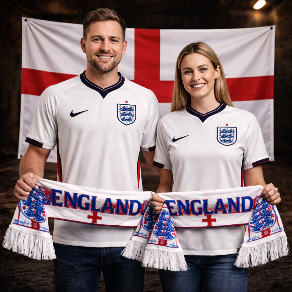 Este kit união captura a essência da Seleção Inglesa para casais. Vistam as camisolas juntos, enrolem os cachecóis ao pescoço e hasteiem a bandeira. Sintam que estão unidos à equipa e a milhões de torcedores. No estádio de mãos dadas, na varanda a vibrar juntos ou em casa a torcer pelo próximo golo histórico. Porque apoiar Inglaterra não é só cultura… é uma emoção partilhada que dura para sempre.